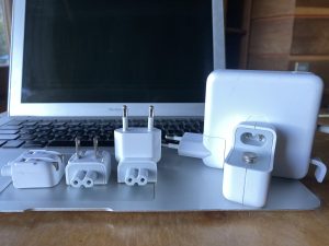 The only electronics I brought with me from the U.S. that I still use daily are my iPhone and my MacBook. And, for those, I prefer the non-bulky inserts from the Apple World Travel Adapter Kit.