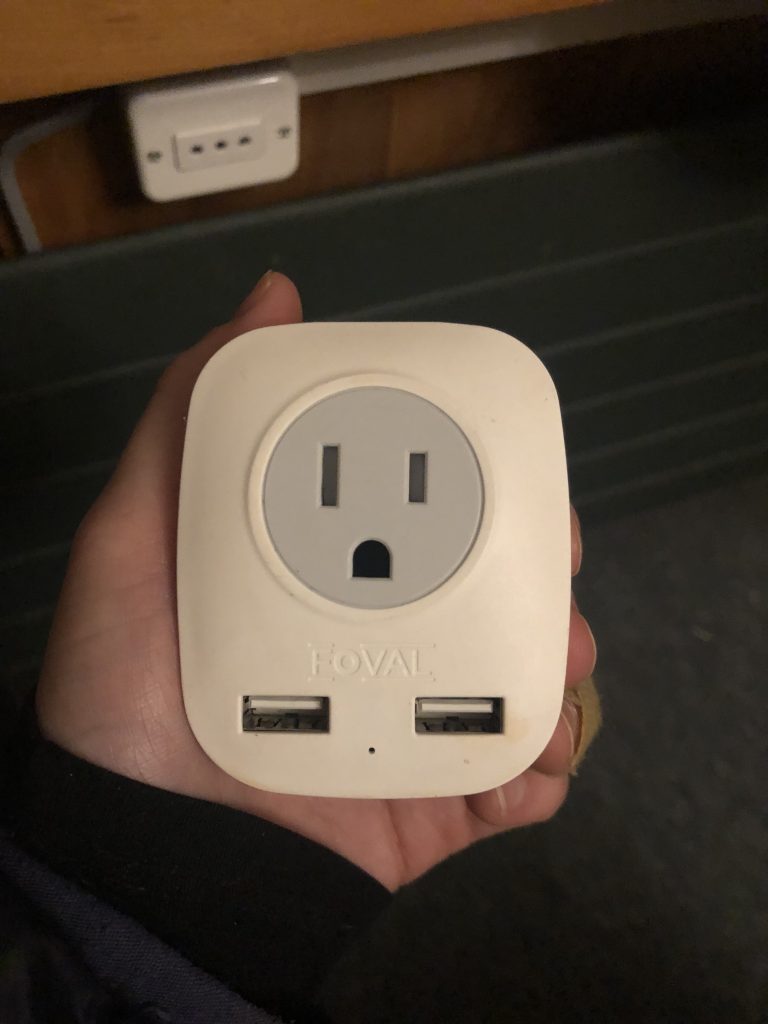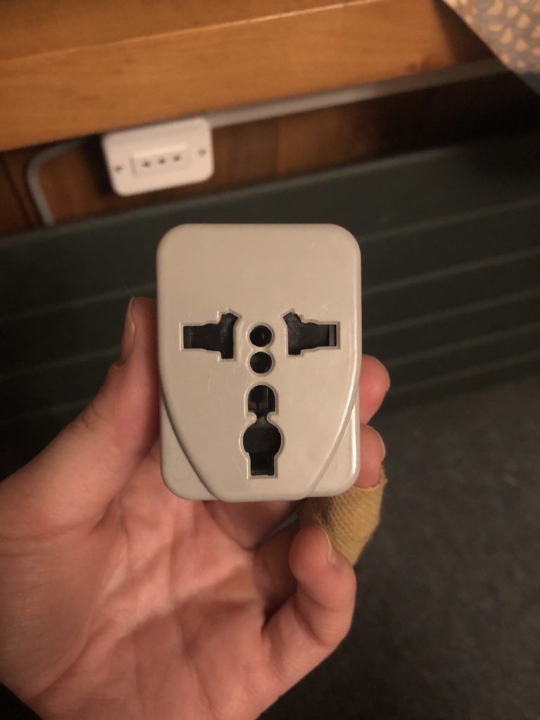 ** Our Family Travel Hack** If you take a second glance at the picture above, you’ll see that we used a U.S.-made powerstrip from home — like this one or this one with USB ports — and simply attached a grounded plug adapter (see below) and voilà.