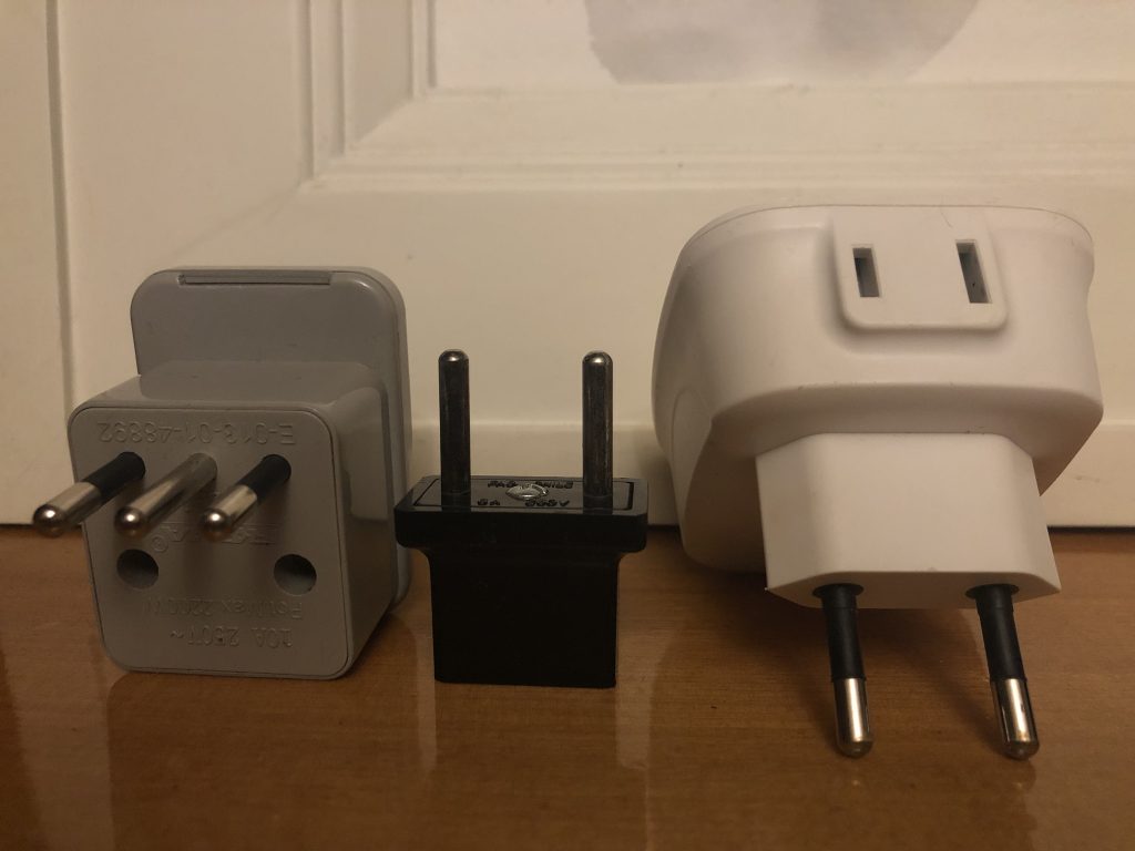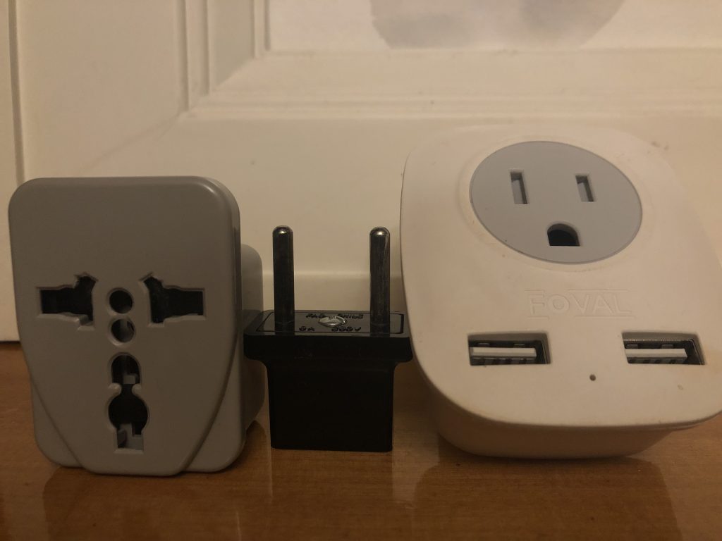 2. If your electronics don’t have type-C or type-L plugs, you will need a travel adapter.