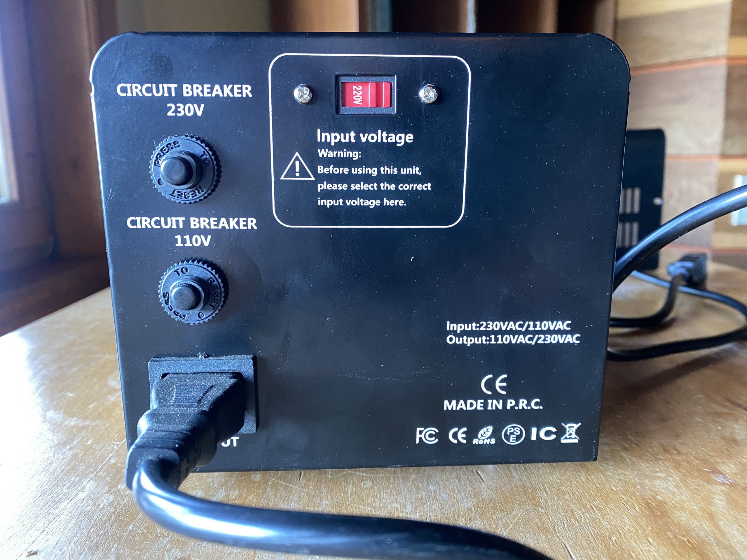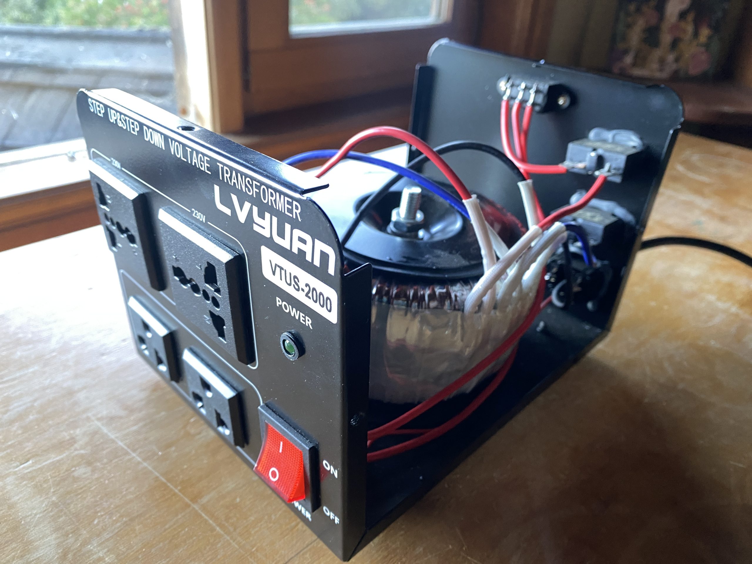 You can see that my converter is big and heavy (it weighs 10 lbs./ 4.5 kg) and has a big motor. I bought it here (the brand name has changed from Lvyuan to Yinleader). If you’re looking for something slightly slimmer, I found this one with positive reviews, but it’s actually heavier at almost 15 lbs., and it’s only a step-down converter.